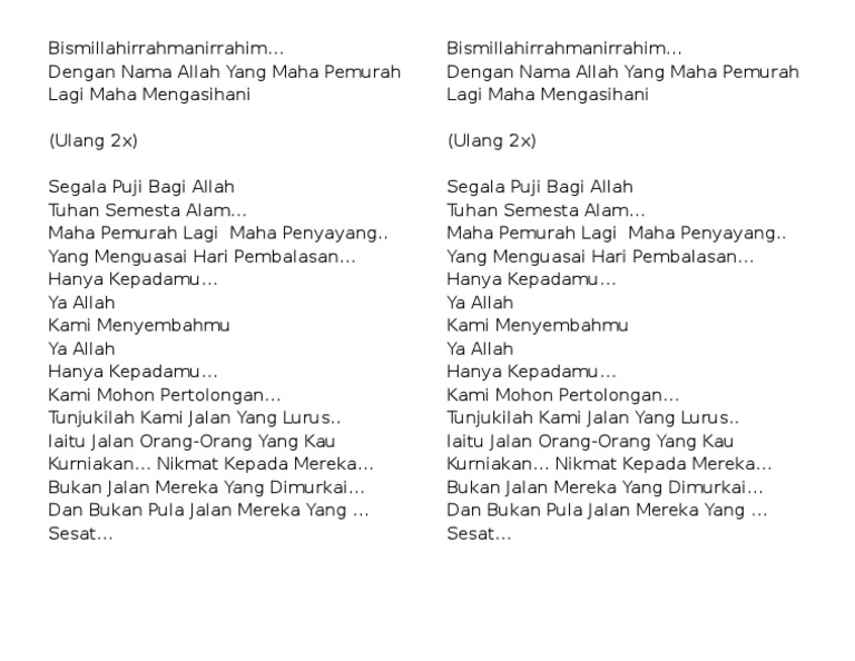 Segala Puji Bagi Allah Al Fatihah Lirik Youtube